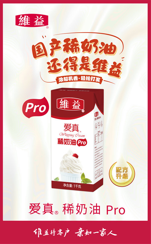 维益爱真稀奶油Pro,国产稀奶油,还得是维益,国产标杆,乳香浓郁,操作便捷,性价比优越。