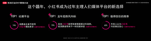 小红书作为年轻人的生活方式平台,是潮流发源地。大批年轻消费主力军在小红书打开生活新场景,洞见潮流趋势生活。品牌商家完全可以借小红书三大CNY IP影响力切入CNY消费主力军,共同制造吃喝玩乐高强度关联的CNY消费场景,强化消费者年货心智和情感链接,通过种草实现心智播种、消费达成的商业闭环。拥有趋势内容和活跃人群的小红书将会成为品牌商家2024CNY营销重要爆发阵地,助力快消商家新年首轮商业增长。