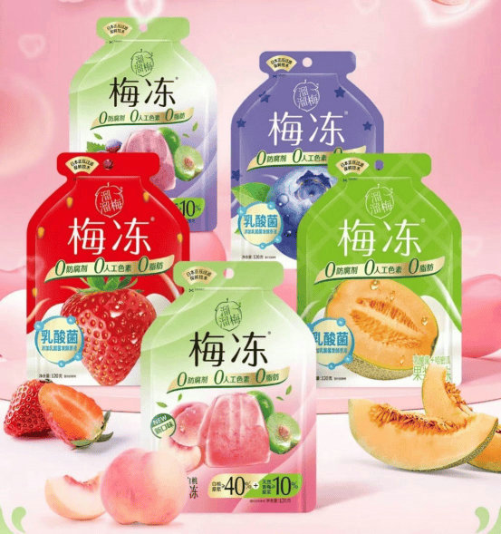 梅冻的核心品牌价值是天然,研发产品最核心也是天然,。梅冻坚持鲜果生榨,以天然原浆为原材料,果浆含量占比高于40%,最大化提升果冻的水果风味,还原水果原生滋味;为获得优质原料,梅冻还将选材范围扩大至全球,真正做到“全球甄选好食材”。斥巨资引进日本ORIHIRO工艺和设备制造,以及正压过滤无菌锁鲜技术等,最终研发出了集“0防腐剂”“0人工色素”为一体的“新一代果冻”,成功抢滩高端果冻行业,成为“果冻界顶流”。