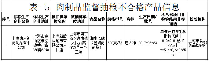 上海市公布2017年第41期省级食品安全监督抽检信息