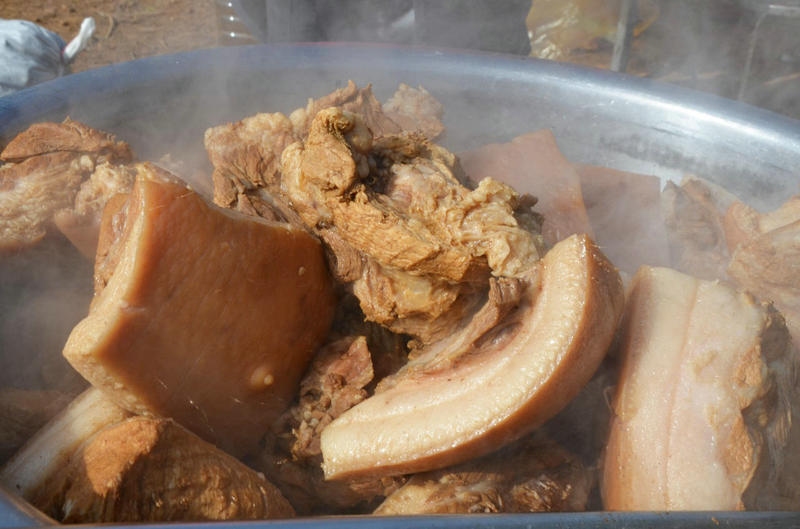 刚从大卤锅里捞出来的卤肉块,热气腾腾的看着很有食欲,吃肉要吃肥肉的观念,曾经影响了农村人很多年,不过一碗香喷喷的大锅菜,还真离不开这肥嘟嘟的肉片子。