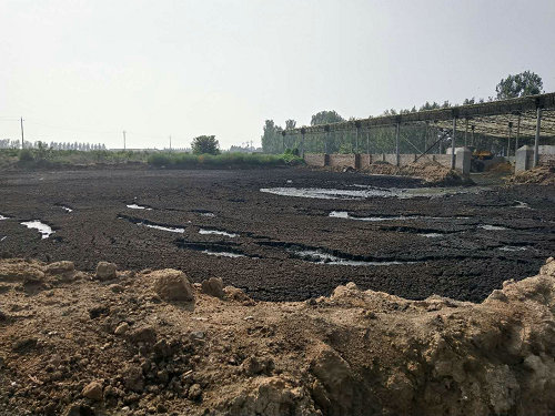 下午3时,记者前往稷山县清河镇北阳城村的晋龙集团晋华养殖场,该场规模略小于西位鸡场及吴嘱鸡场,但污染问题依然严重。该场东侧同样存在粪便露天堆放、污水横流的状况。记者以要做鸡粪加工为由和几位处理鸡粪的鸡场员工聊天,他们告诉记者,“你要做就把鸡粪拉远点,这里环保查得严。场子大没事,但你在这里做肯定不行”。