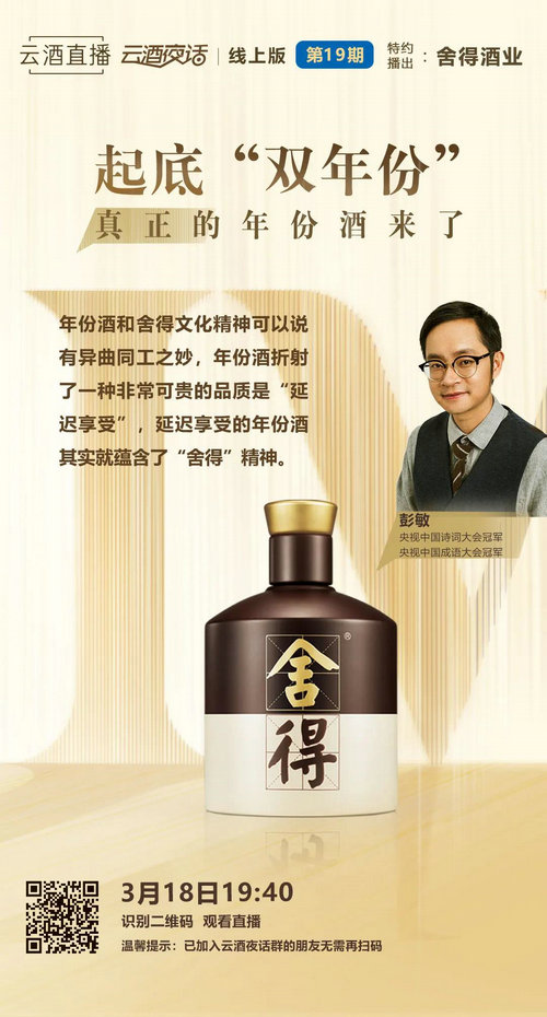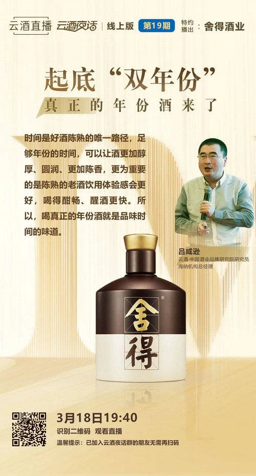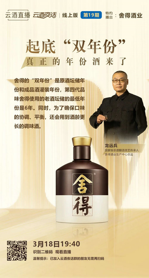 3月18日上午10:00,“品质之上 唯有老酒”第四代品味舍得上市发布会在新浪总部大厦直播;当晚19:40,新一期云酒直播·云酒夜话带来“起底‘双年份’,真正的年份酒来了”,解读第四代品味舍得上市,引来超7.7万酒业人观看。