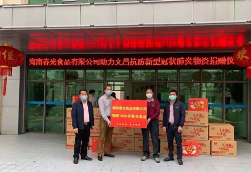 早在2月5日,春光食品已经投入到海南地区的抗击疫情工作中,向文昌市一线防疫医务人员和集中医学观察点捐赠了1000份春光食品,助力文昌市疫情防控工作;在得知琼海疫情防控物资紧缺的情况后,向琼海市红十字会捐赠1000份春光食品;向海口市秀英区政府捐赠640份春光食品;为了让滞留三亚的湖北旅客能够感受到海南的热情和温暖,2月13日,春光食品向三亚市政府捐赠130份春光礼盒,赠予返回武汉的朋友。据介绍,此批捐赠物资总价值约50万元。