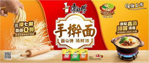 2、技术创新:据康师傅手擀面产品负责人在中国方便面大会上的介绍,为解决方便面在口感上与传统手工面条的差距,研发团队请教了多位民间大师,针对性地将工艺创新升级为“三揉七擀”,不仅面条耐煮,更筋道还原了地道传统手擀面的口感。在此基础上,还凭借经萃取技术而确保浓郁的熬制高汤包与精选食材打造的料理包,最终打造出这款兼顾美味营养的“煮面新标杆”,让消费者居家享受一碗好面成为了“举手之劳”。