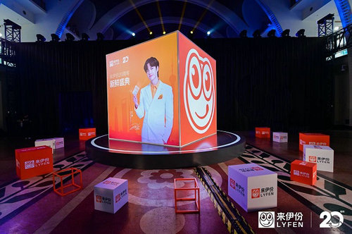 为更好地推进品牌年轻化进程,来伊份在20周年新鲜盛典上携手国际权威色彩机构Pantone潘通,正式发布品牌专属色“来伊份橙” (Pantone 1505c)。此外,来伊份的品牌视觉系统也全面升级。全新的伊仔形象巨型魔方吸引了众多关注,俏皮的眼睛、微笑上扬的舌头、爱心轮廓,向消费者传递了“新鲜看得见、新鲜在口中、新鲜在心田”的品牌符号。全新的来伊份视觉表达,散发着年轻旺盛的生命力和无限的新鲜活力。