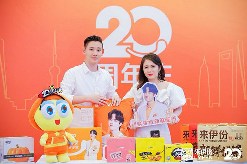 来伊份联合创始人兼董事长施永雷、来伊份联合创始人兼总裁郁瑞芬、来伊份伊仔以及品牌代言人王一博共同切庆生蛋糕,全场此起彼伏地响起“来伊份20周年生日快乐!永远新鲜!” 的祝福声,这场新鲜盛典直播综艺也在上百万观众和食品行业的数百位嘉宾的共同见证下圆满收官。这场盛典的背后,“新鲜零食”战略迈出坚实的又一步。凭借20年市场经验积累和探索,来伊份新鲜开启了零食的下半场,秉承“原料优鲜、技术保鲜、包装锁鲜、产销争鲜、配送领鲜”五大新鲜标准,来伊份正在改变零食产业的格局。20年峥嵘前行,让我们共同期待来伊份的新鲜未来!