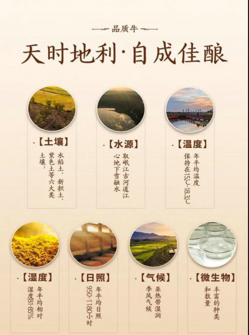 据了解,五粮浓香·辛丑牛年生肖酒酿造于中国酒都宜宾,当地拥有独特的气候、土壤、水源、植被和适合酿酒微生物繁衍的自然生态环境,是地球同纬度上最适合酿造优质纯正蒸馏白酒的地区。
