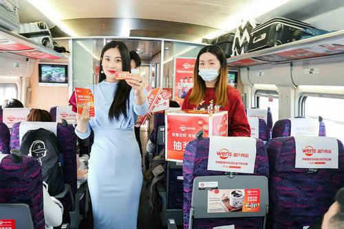 首发仪式现场,品牌专列车厢全方位展示了温氏食品雄厚的企业实力、过硬的产品质量和极具温度的品牌精髓“民食为天,食唯安鲜”。正因为这些优势和品牌理念,温氏食品才能满足中国国家羽毛球队的食品安全与健康标准,成为国羽的官方供应商,这也为大家在疫情当下担忧食品安全提供了安心的选择。本次启动仪式,温氏食品在新春佳节来临之际,应景地打出“食唯安鲜·年味到家”口号,以高端品质和优质服务诚意献礼,现场嘉宾可以在列车开放体验区领取品牌京东店铺优惠券,收获记忆中家的味道。