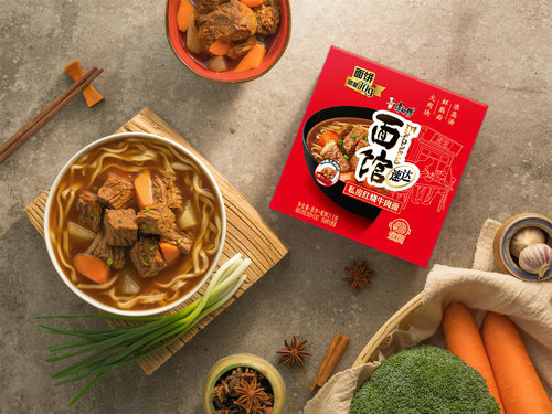 康师傅速达面馆,最被消费者赞誉的就是其“所见即所得”的大块牛肉,采用了精选进口牛肉,细嫩多汁,并运用了航天领域的RP技术进行锁鲜,让大肉块中的氨基酸等保持长时间稳定,最大化锁住肉块的新鲜口感与营养成分,实现了对原汁大块牛肉紧实入味口感的高度还原。