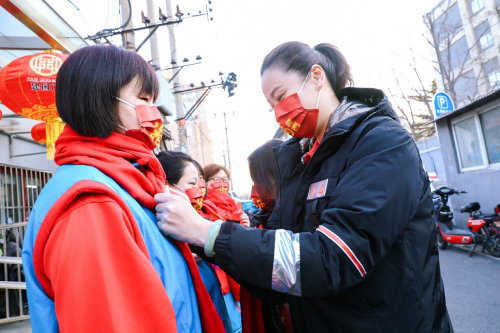 为感谢奋战在抗疫前线的平凡英雄们,小年夜当天,福临门携手女排队员们前往北京模范抗疫社区,为基层社区工作者送去象征新春祝福的红围脖、红口罩、春联,以及精心准备的慰问年货。