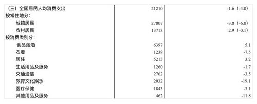同时,显著可见,在食品和居住等必需品方面,居民消费支出是增长的。而在医疗、交通、通信、生活用品、服务、教育、文娱等方面,都出现了明显的下滑。