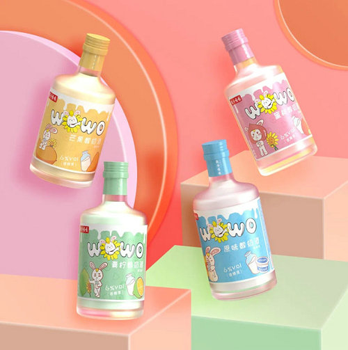 较于甜美清酒,兔子喔喔酸奶酒则高度还原新鲜的牛乳状态,经过多道的古法酿造工序酿造而成,进行高分子的乳化处理,以健康为前提下,不添加任何香精,色素,防腐剂,然后进行低温杀菌冷却,还原最真实的口感,最后自然发酵后密封灌装。目前该款新品主要为原味、青柠、蜜桃与芒果4种口味——精选四川的青柠,海南的芒果与7月至8月应季的多汁水蜜桃为原果,融以新鲜牛乳,细腻柔滑清爽,风味浓郁,一口即可感受果酒的浓醇鲜甜,一杯酒下肚,扑鼻而来满满的酸奶香气,是一款为微醺群体打造的“奶萌”果酒。