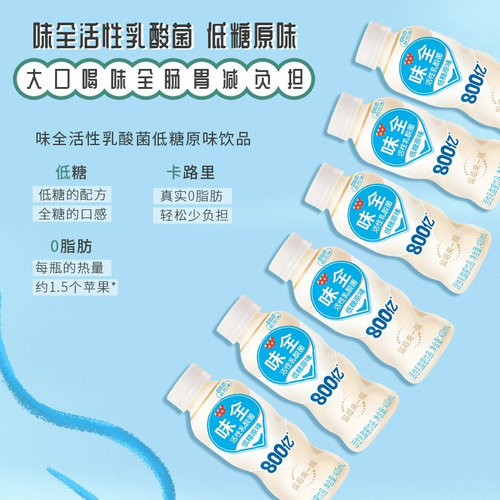 味全活性乳酸菌饮品的用心之处还体现在每百毫升约含800亿活性菌,全程冷链配送,收货后0-7°C冷藏保存,锁住风味,口感更佳。