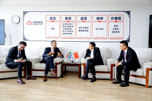 6月7日,受白象食品邀请,南非驻华大使馆公使衔参赞约瑟夫先生一行专程来到白象食品集团总部,进行为期两天的商业参访,并与白象食品集团签订战略合作协议。在此次参访中,约瑟夫先生与白象食品集团领导班子展开深度会谈,对白象食品的企业实力表达高度赞赏,双方本着“长期合作、优势互补、互利共赢”的原则携手共创,助力白象食品在南非的国际化之路。这也意味着,在未来,南非大使馆将充分发挥其在南非政府部门的资源优势,协助白象食品参与国际业务,促进白象食品在南非的落地和发展。作为一家驰名国内外的民族企业,白象食品曾在此次战略合作前持续进行海外战略布局,将中国民族美味推上国际舞台,此次公使衔参赞约瑟夫先生的来访,为白象食品持续国际化之路打开新格局,标志着白象食品的国际业务之路再上阶梯。