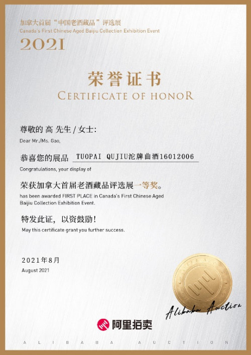 舍得酒、沱牌曲酒斩获加拿大“中国老酒藏品”一等奖