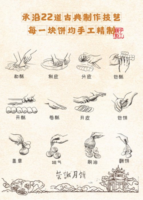 潮式月饼的制作工艺从饼皮的配制、馅料的制作、包饼的手艺到烘烤的生产环节,每一块都需由资深饼师手工完成,烤制好后尤为酥香清甜,深受老百姓喜爱,在潮汕民间有着不可动摇的地位。荣诚沿承传统潮式月饼制作技艺,并成功入选非物质文化遗产名录,是潮式月饼代表中的佼佼者。