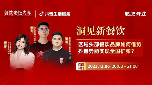 《洞见新餐饮》首期对谈栏目联合餐饮老板内参,邀请到了武汉肥肥虾庄的联合创始人张阳,一起聊聊如何在3年时间里通过抖音平台实现品牌影响力和交易额的双丰收。肥肥虾庄2008年创立于武汉,专注小龙虾赛道,2020年加入抖音生活服务平台,2023年通过抖音直播和短视频实现GMV超过1.2亿,目前,肥肥虾庄在武汉拥有30多家门店,西安3家,深圳3家,合肥1家。