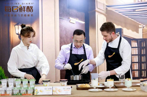 3月15日,《总裁厨房》第二季直播活动在上海前滩中心举行,这场活动是蒙牛集团“315消费者日”系列活动之一。活动中,蒙牛总裁卢敏放走进直播间,携手“每日鲜酪”星级美味品鉴官——米其林法餐经验星厨戴广坦(Corentin Delcroix),以“法式甜品制作+现场对话访谈”的形式,与消费者温情互动。