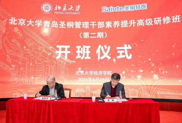 2024年4月15日,北京大学青岛圣桐管理干部素养提升高级研修班(第二期)在北京大学经济学院正式启动!来自全国各地的150位圣桐特医优秀经销商伙伴齐聚一堂,开启一段探寻前沿理论、提升专业素养、启迪思想智慧的学术之旅。此次培训是继去年11月份第一期培训班成功举办之后,圣桐特医又一次加强专业队伍素养提升,赋能合作伙伴,助力特医食品产业发展的战略之举!
