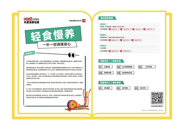 4、不确定的大环境,健康成为各年龄层最确定的指标。我们观察到当下消费者在健康生活方式的演绎上,呈现出两种消费场景,一种是轻食慢养,就是把健康饮食观念渗透日常,小红书上“轻食” ”酸奶碗” “减脂主食” “食疗养生” “养生茶”等关键词均呈现搜索上涨趋势;另一种是严肃营养,以功效性、科学性为主导,口服营养在更多健康领域被关注,比如女性生理健康、头发等。