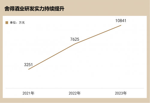 同时,在生产端来看,在复星“科创引领”战略的引导下,舍得酒业近年来科创实力持续提升。尤其是近三年来,舍得酒业的研发费用逐年增加,从2021年的3251万元剧增至2023年的1.08亿元。今年一季度,舍得酒业研发费用更是达到2857万元,同比增长72%。
