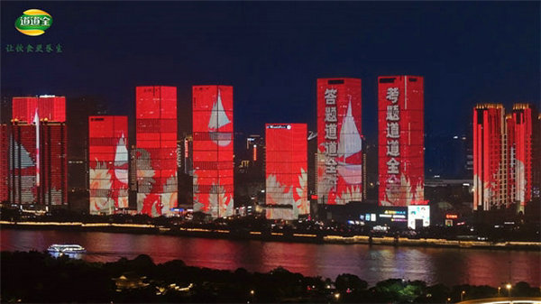 6月5日的夜晚,长沙一江两岸被道道全的灯光秀点亮。这场视觉盛宴不仅是对高考学子的祝福,更是对他们未来无限可能的期许。"考题道道全会,答题道道全对"的口号在灯光中闪耀,成为全城瞩目的焦点,照亮了学子们前行的道路,也照亮了他们心中的梦想。