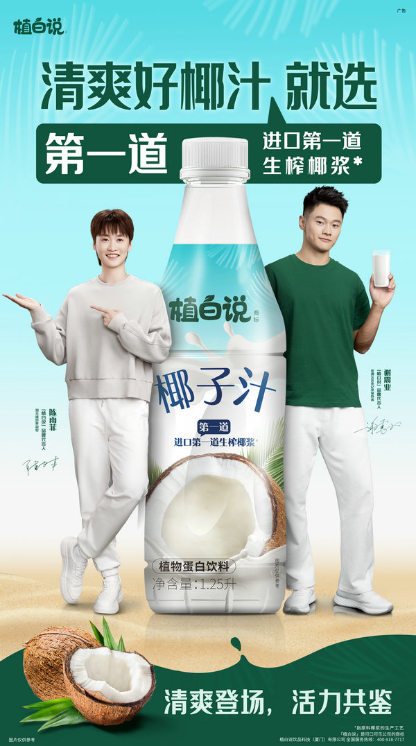 植白说是可口可乐公司在华植物基品类的独立运营业务单元,倡导的品牌理念是积极向上、努力寻光、种子的力量。植白说从诞生初始,就瞄准新锐年轻消费者群体,致力满足消费者对于植基品类的消费需求,希望给消费者提供更好的产品,并通过产品传达更加积极,乐观,健康的生活方式。连续2年签约了国内的体育大咖羽毛球世界冠军陈雨菲和男子200米亚洲纪录保持者谢震业为品牌代言人。体育明星积极向上的拼搏精神,和植白说在植物基赛道呈现给消费者更健康,更有朝气的生活方式极度契合。双代言人与品牌的合作互动,毫无疑问能够助力品牌以更加“活力”的姿态脱颖而出!在这个夏天,两位将身披战袍,赴巴黎征战,预祝他们能拿下让自己满意的成绩!