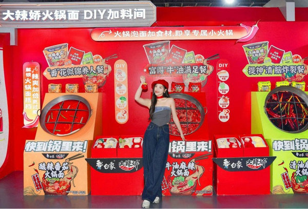 “大辣娇火锅面DIY加料间”则使每位体验者成为美食创造者,往不同口味的火锅面中加入自己喜爱的火锅食材道具,即可DIY专属一人食火锅餐。在趣味游戏体验中,打开白象大辣娇火锅面的百搭吃法。