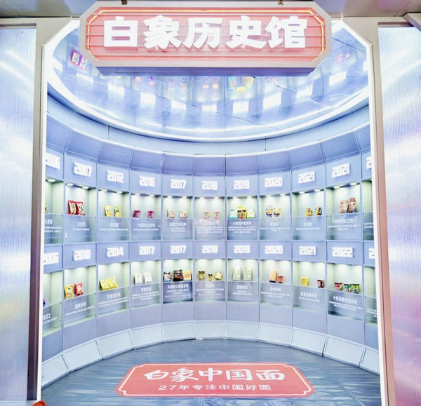 “白象历史馆”则采用270°沉浸式环绕设计,展示白象27年来的经典产品:汤好喝老母鸡汤面、白象大辣娇麻辣小龙虾拌面、白象大辣娇火锅面、蟹黄面和香菜面等等。白象的产品创新,从未停止!