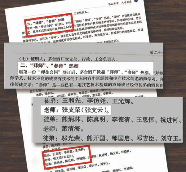 《中国贵州茅台酒厂有限责任公司志》中记录张支云收徒的经历