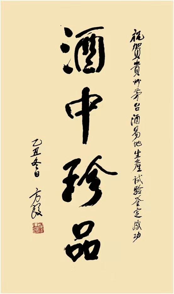 “祝贺贵州茅台酒易地生产试验鉴定成功——酒中珍品”