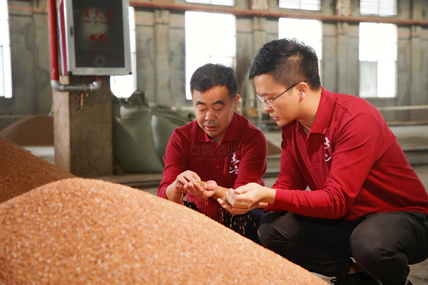 2023年下沙季,张支云酿酒技法传承人张富强、张炀深入生产一线,检查酿酒用高粱的品质