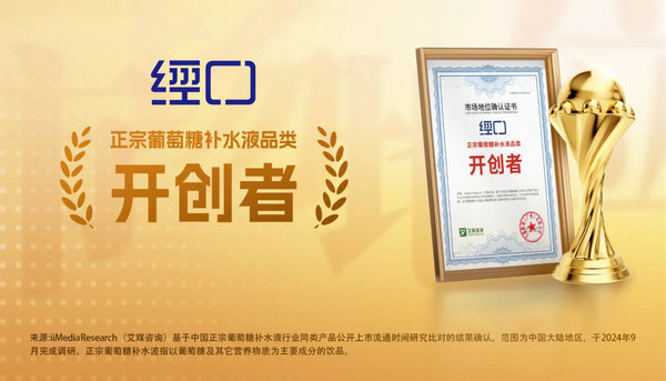 2024年10月,经口获全球新经济产业第三方数据挖掘和分析机构iiMedia Research(艾媒咨询)授予的“正宗葡萄糖补水液品类开创者”市场地位确认。