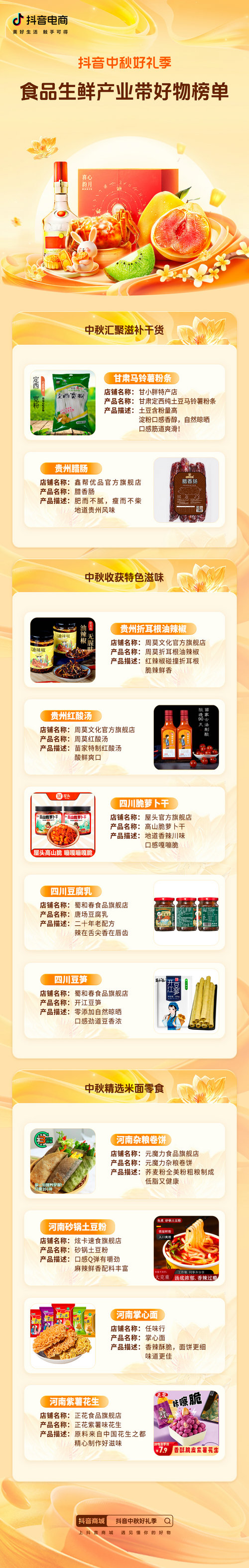 入秋之后,抖音电商食品生鲜品类增长势头明显,即将到来的中秋、国庆双节连庆,更为大闸蟹、水果、酒水滋补、月饼等节令品类提供了强劲的消费市场。……详细>>